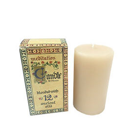 Enjoy our famous Meditation fragrance, a blend of 12 Ancient Oils with unique and lasting properties. An artful and harmonious blend of natural substances. 40 hour candle. Trim wick before lighting, always enjoy your candles safely.
