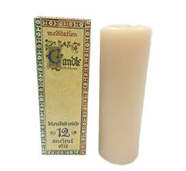 Enjoy our famous Meditation fragrance, a blend of 12 Ancient Oils with unique and lasting properties. An artful and harmonious blend of natural substances. 70 hour candle. Trim wick before lighting, always enjoy your candles safely.